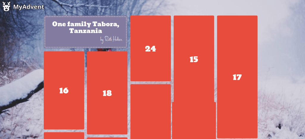 Hi, this is the Familia Moja advent calendar. You can open a new door every day….. Really exciting. And you will never gain a gram as guaranteed chocolate free…. Enjoy and greetings